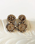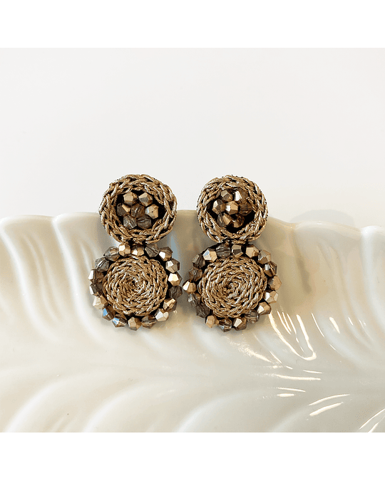 Aro bordado a mano con mostacillas doradas e hilo metalizado.