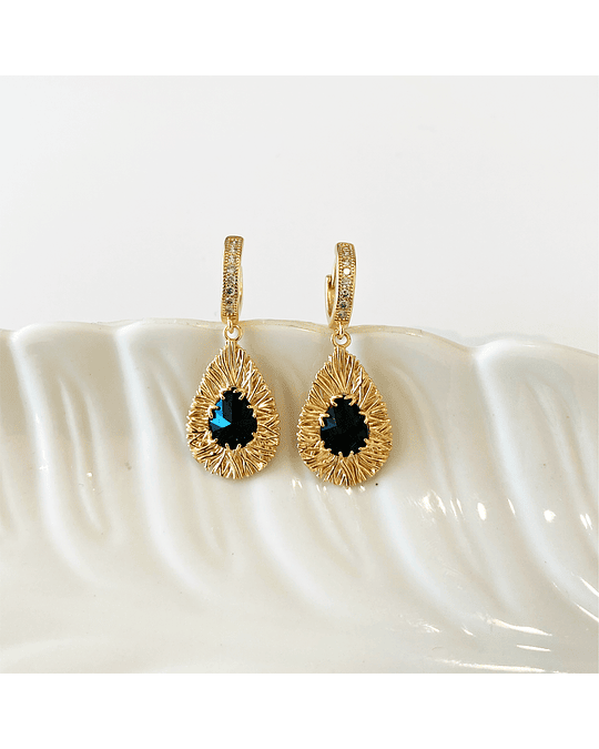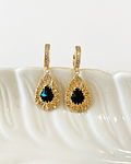 Aro bañado en oro con base con incrustaciones de circones y colgante con cristal negro.