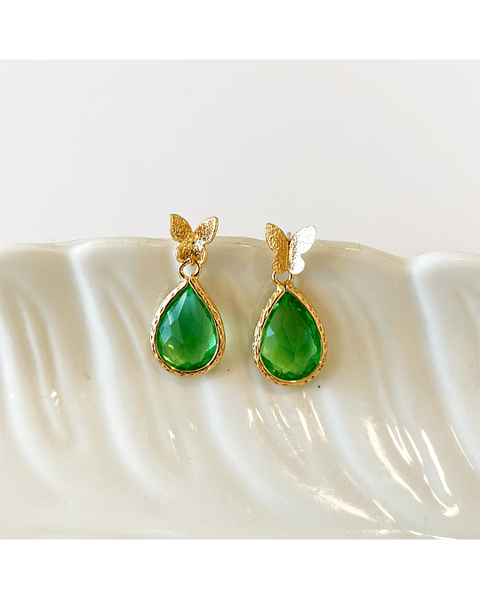 Aro dorado bañado en oro con colgante de cristal verde