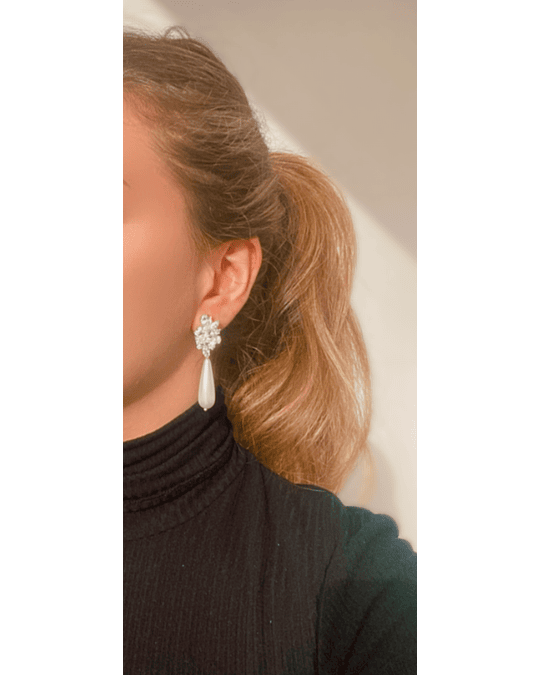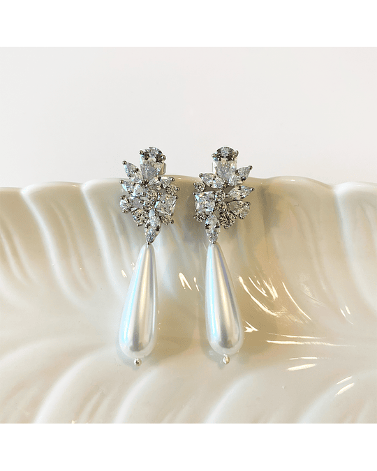 Aro plateado con base de circonitas irregular y colgante de perla de fantasía.