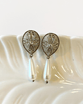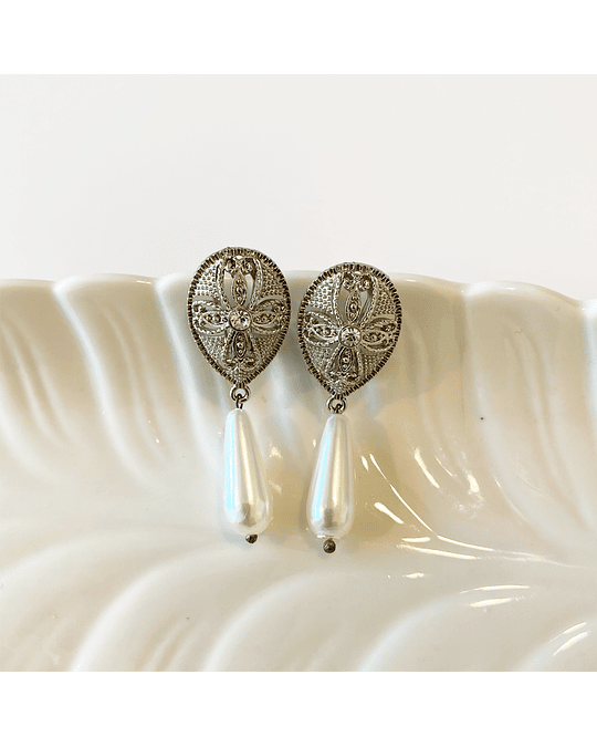 Aro plateado con base bañada en plata 925 con incrustación de circonita y perlón en forma de gota.