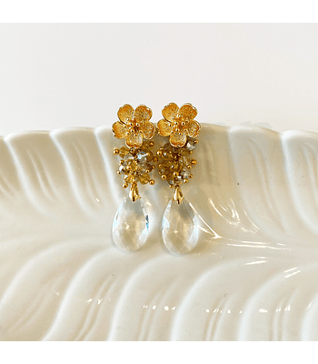 Aro dorado Flores circonita, cristal y perla