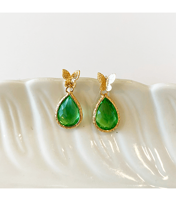 Aro dorado mariposa y cristal verde