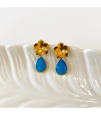 Aro dorado Flor Racimo y Cristal Blue